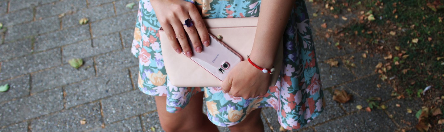 Pentru tinuta de astazi am ales sa scot in evidenta floricele purpuri adaugand accesorii in aceasi nuanta si pentru ca este destul de colorata mi-am permis sa adaug o gentuta in nuanta roz pudrat pentru a completa outfitul.