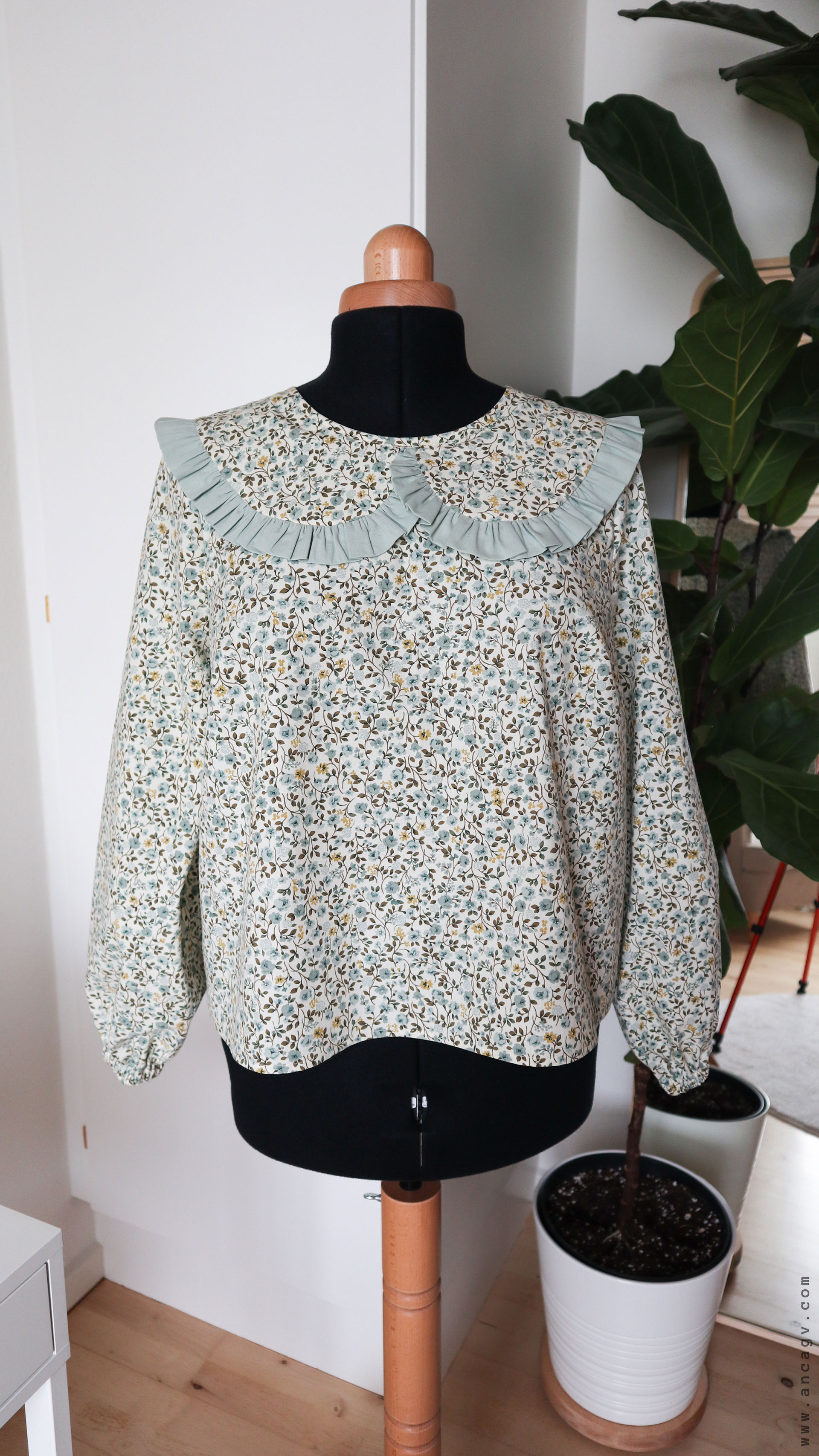 Finally, the last project made out of that fabric was the blouse I made this year. As my inspiration was centred around big collars and I was late to the trend, I drafted a new pattern and played slightly with the collar options. I came up with this idea, and probably I will write a new blog post and explain in-depth how to make an oversized collar for any type of blouse you want.